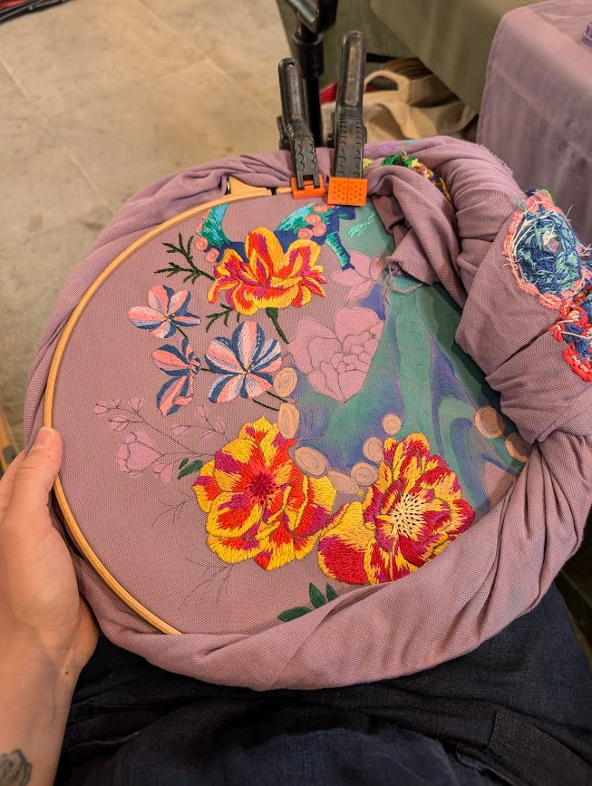 I kicked off the embroidery in the new year of 2025. Since then I have gone through dips and throughs of my focus on it. But, I am super chuffed with how far I have got and how it has turned out.